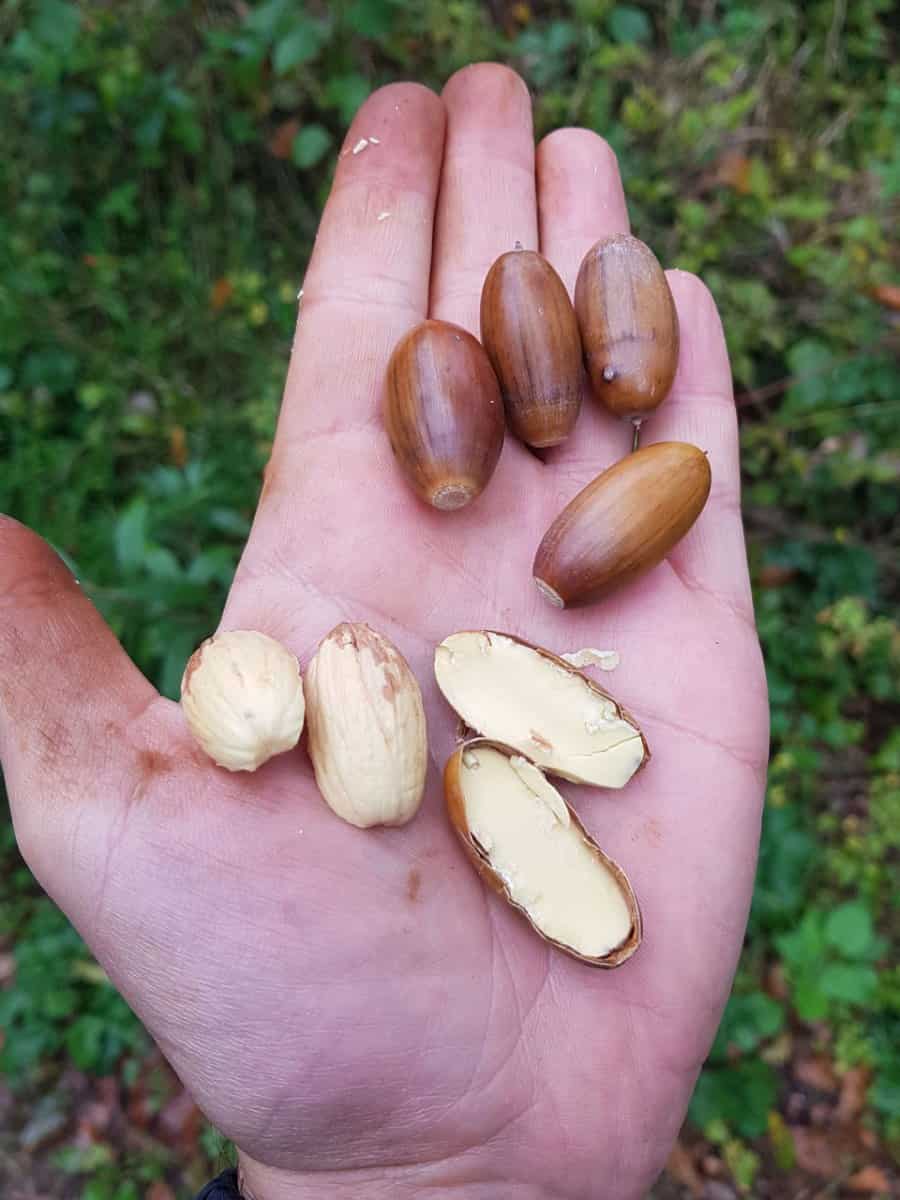 Durch Wässern können die Gerbstoffe herausgelöst werden. Dazu müssen die geschälten und zerstoßenen (oder in dünne Scheiben geschnittenen) Eicheln durch mehrmaliges Baden in Wasser allmählich von den wasserlöslichen Gerbstoffen befreit werden, was sich durch die ausbleibende Verfärbung des Wassers leicht erkennen lässt, wobei eine höhere Temperatur den Vorgang beschleunigt. Eicheln lassen sich für verschiedene Zwecke verarbeiten. Eicheln sind sehr nahrhaft und enthalten bis zu 38 % Stärke. (Video-Tipp: Eicheln aufbereiten und zu Mehl & Brötchen verarbeiten)