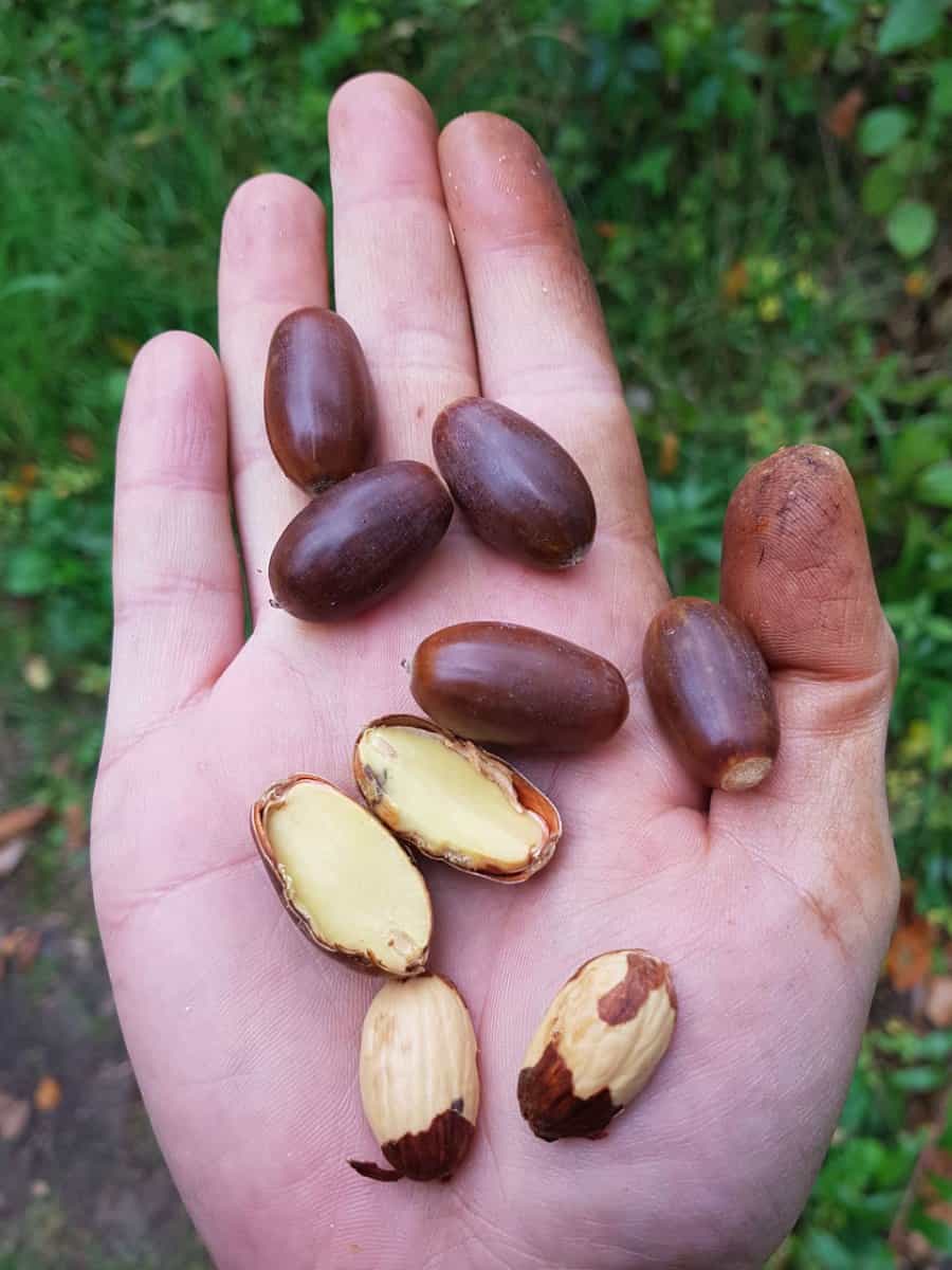 - Früchte (Eicheln) & Erntezeit: September bis Oktober. Nach der Entbitterung lassen sich Eicheln zu Mehl für Brotteige, zu Püree für süße Desserts und Bratlinge oder geröstet zu einem aromatischen Kaffeeersatz verarbeiten.