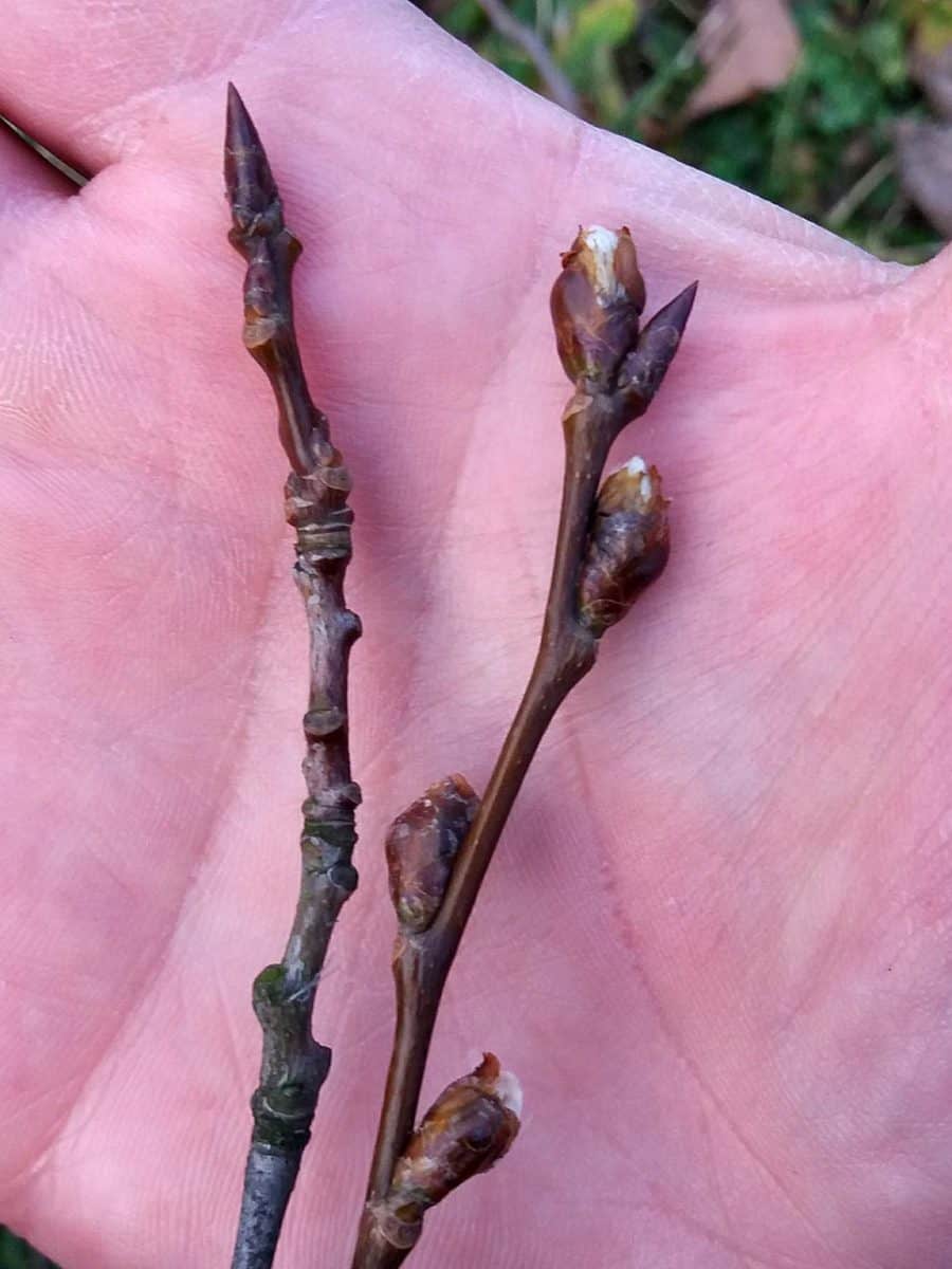 - Knospen: Sie sind kahl, gelb- bis dunkelbraun, etwas klebrig und liegen eng am Zweig an.
