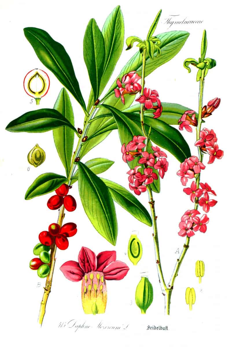- Droge: Mezerei cortex (Seidelbastrinde) – nur noch historisch relevant.