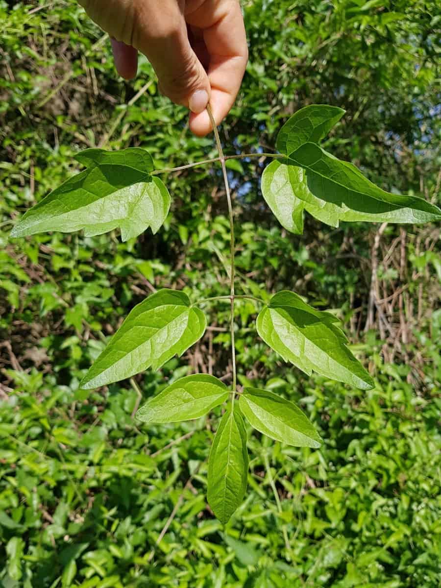 - Stängel & Rinde: Junge Triebe sind grün bis rötlich. Ältere verholzte Stängel (Lianen) können armdick werden und bilden eine typische, in Längsstreifen abblätternde Borke (Streifenborke). Im Querschnitt zeigen die Äste extrem große, mit bloßem Auge sichtbare Wasserleitgefäße (Tracheen).