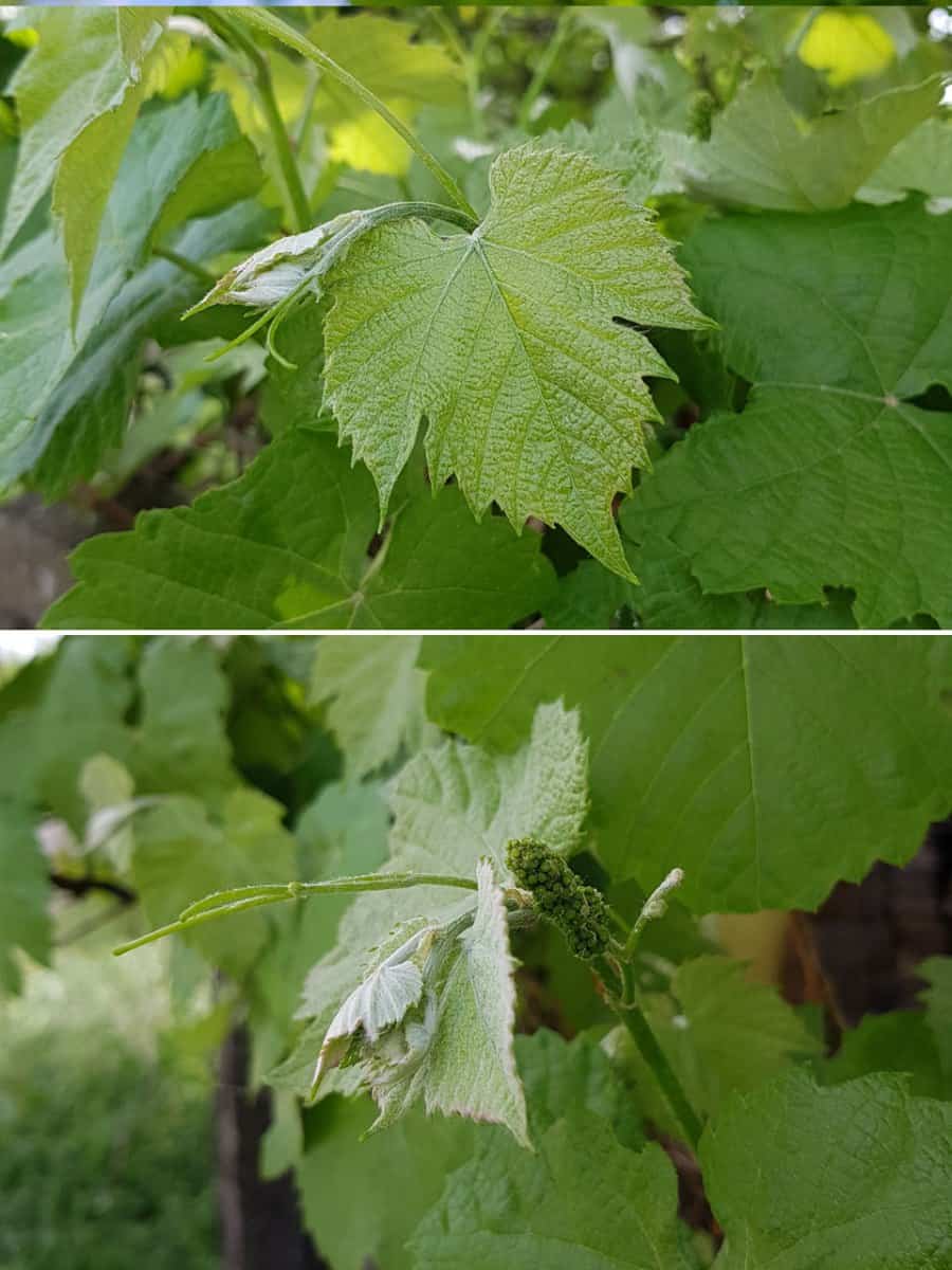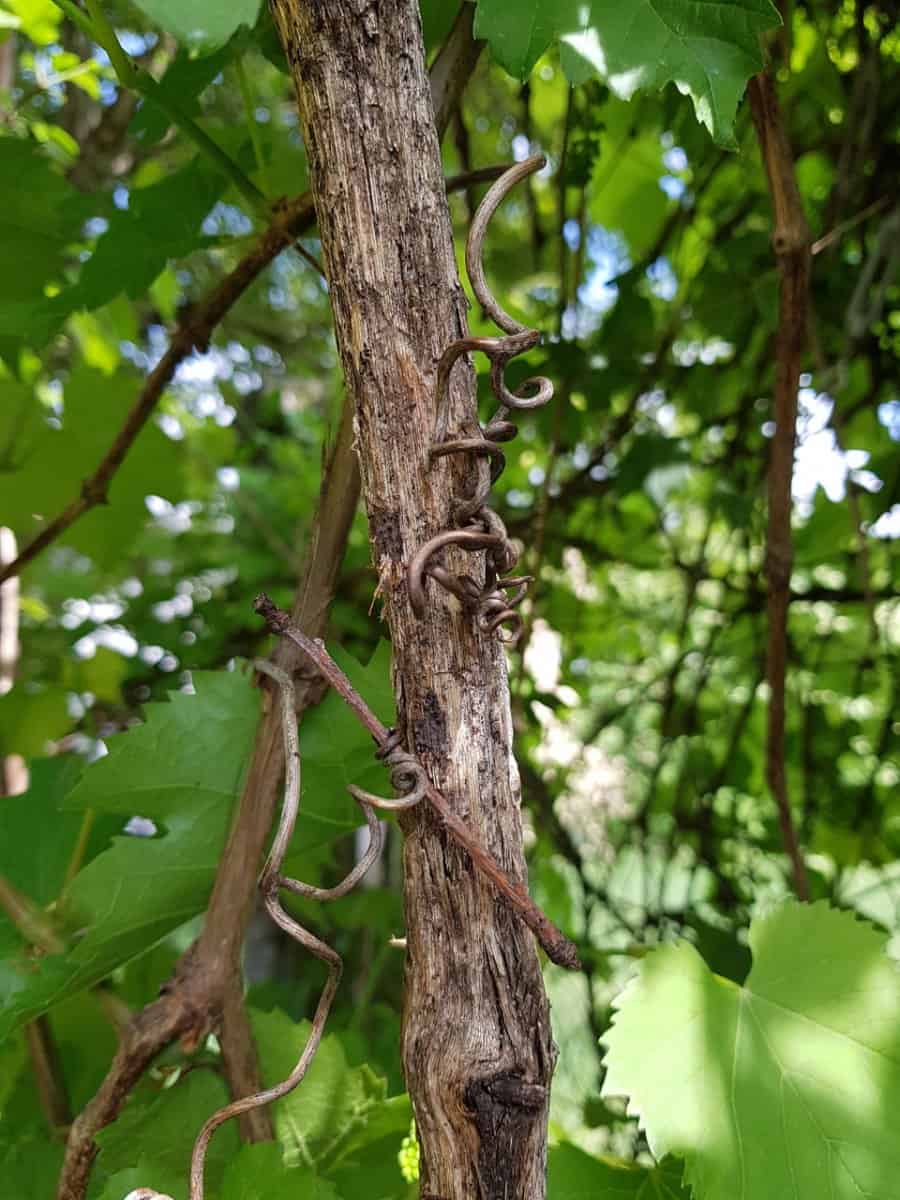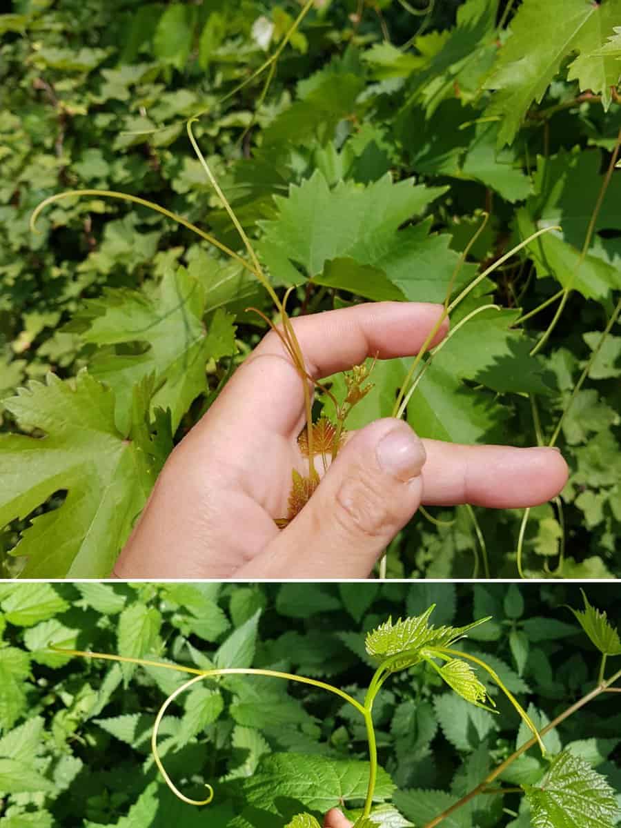 • Ranken: Dem Blatt gegenüber steht am Zweig meist eine gegabelte Sprossranke, mit der sich die Pflanze spiralförmig an Untergründen festhält.