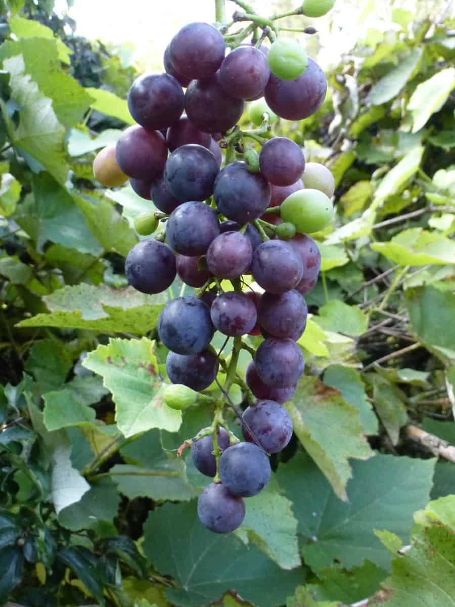 • Jungfernrebe / Wilder Wein (Parthenocissus spp.): Ein beliebter Zierranker, der im Herbst extrem leuchtend rot färbt. Er bildet aber keine großen, saftigen Trauben aus, sondern nur winzige, ungenießbare blaue Beeren. Zudem hat der Wilde Wein oft fünfzählig gefingerte Blätter (wie eine Hand) und Haftscheiben an den Ranken.