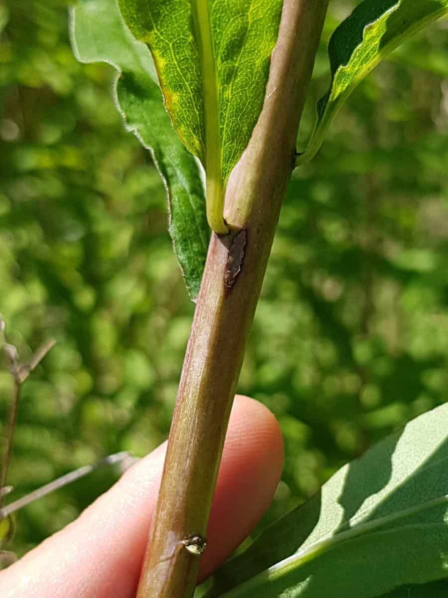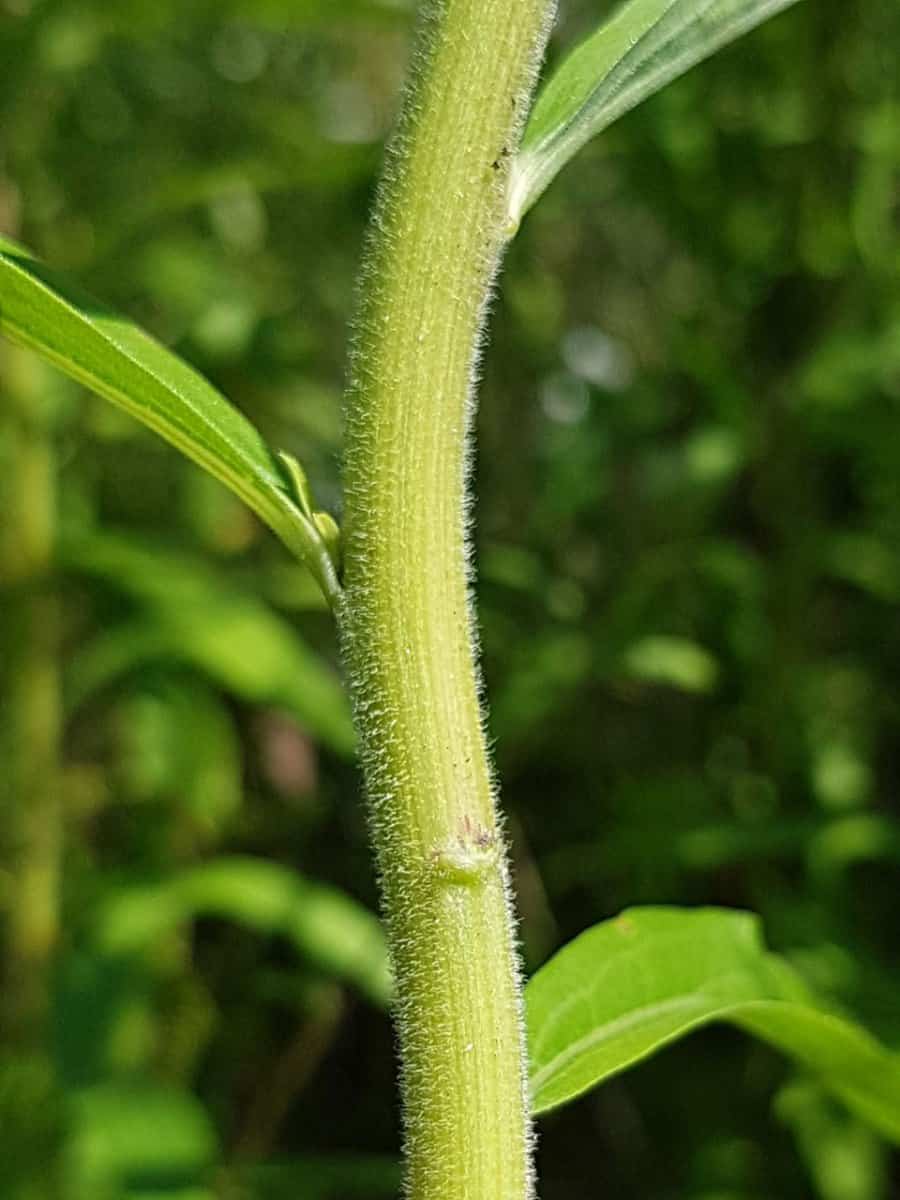 Die Stängelblätter sind schmal-lanzettlich und vor allem im vorderen Drittel scharf gesägt. Auch die Blattunterseite ist auf den Nerven deutlich behaart, was sich beim Drüberstreichen rau oder samtig anfühlt.