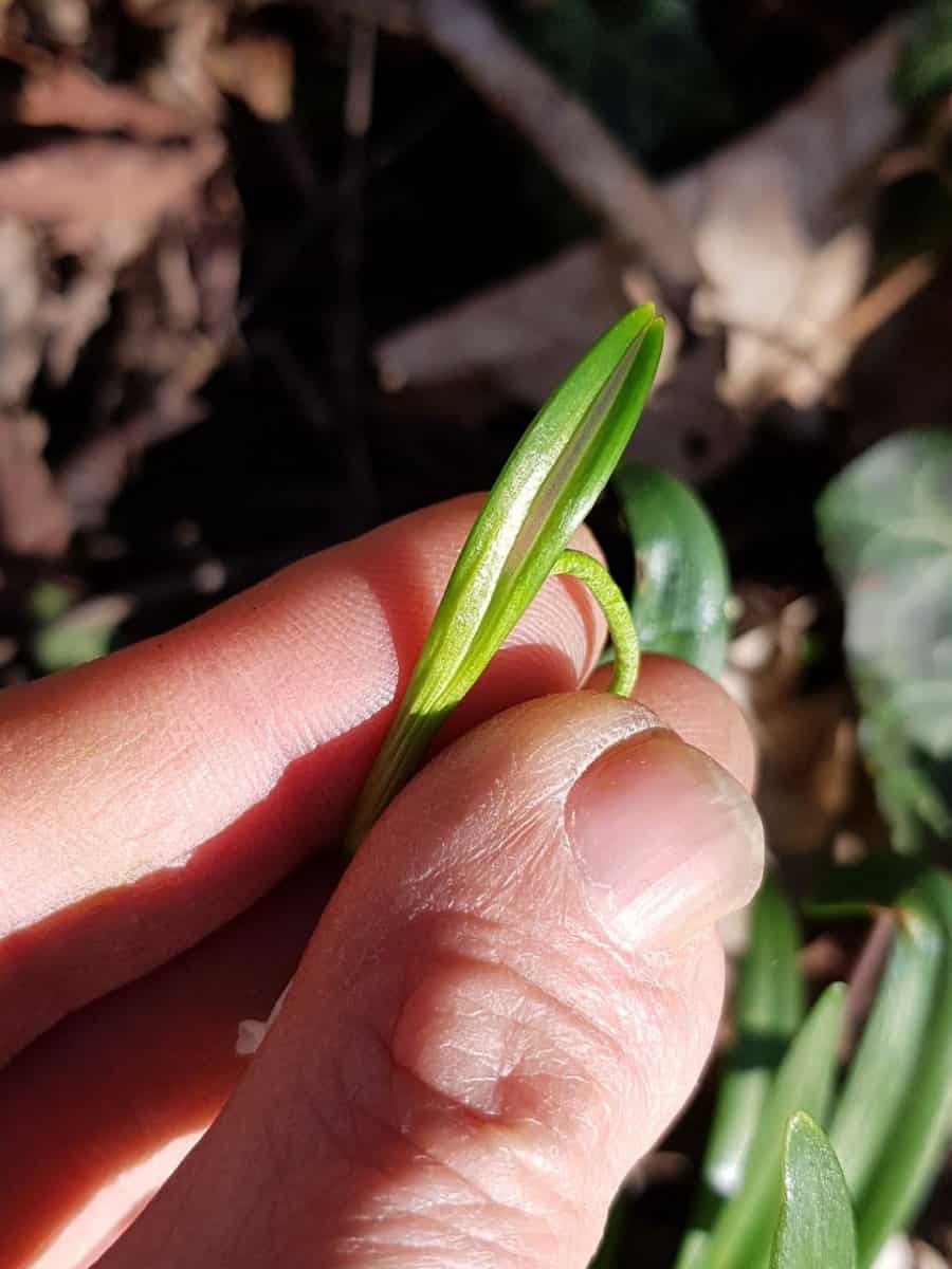 - Wurzelwerk: Unterirdische Zwiebel (ca. 2 cm dick, meist tief liegend)