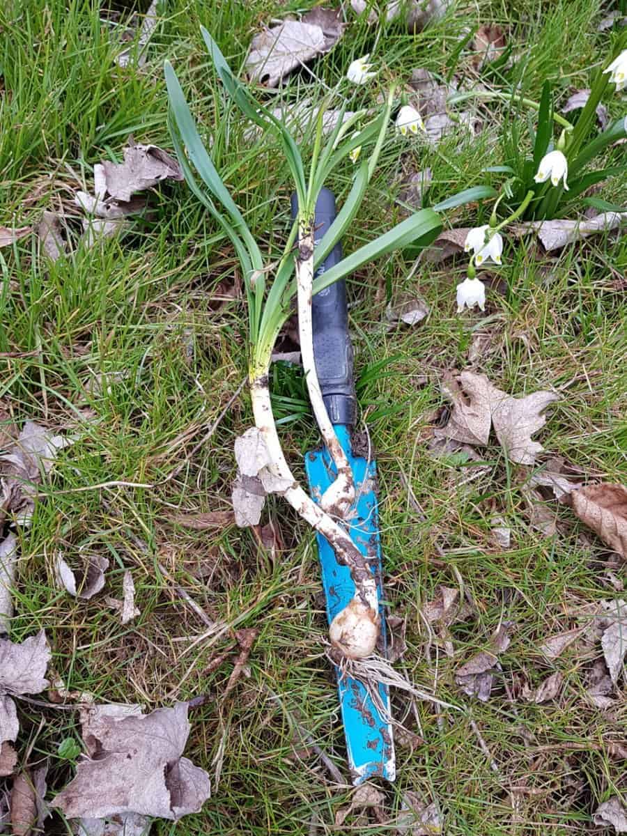 - Zwiebel: Das Überdauerungsorgan misst etwa 2 cm im Durchmesser und sitzt oft bis zu 30 cm tief im Erdreich.