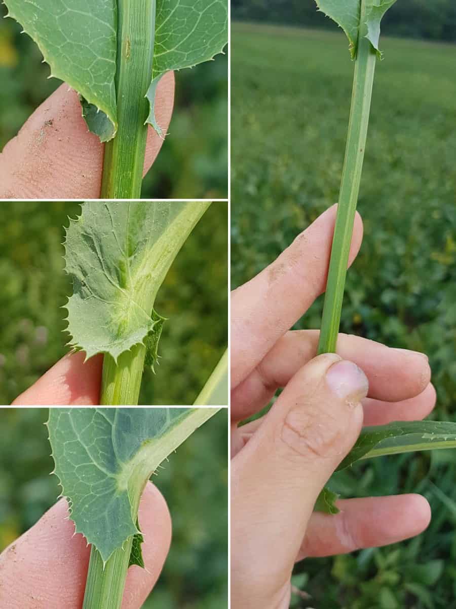 - Stängel: Aufrecht, hohl, milchsaftführend und meist erst im oberen Bereich (beim Blütenstand) verzweigt.
