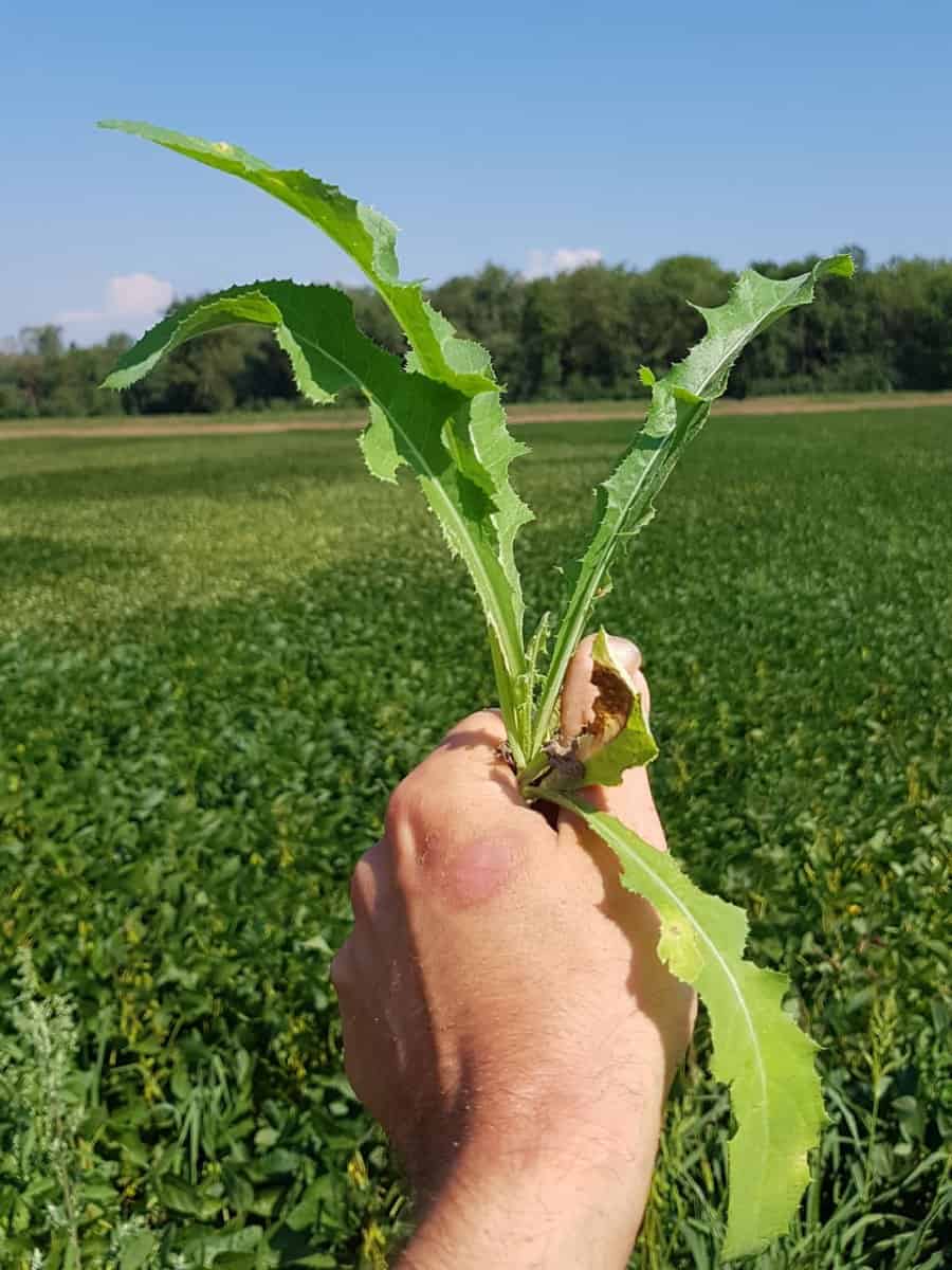 In der Landwirtschaft und im Gartenbau ist die Acker-Gänsedistel oft wenig geliebt, da sie als schwer zu bekämpfendes Beikraut gilt. Das liegt an ihrem imposanten, bis zu 2 Meter tief reichenden Kriechrhizom. Versucht man die Pflanze mechanisch durch Hacken oder Pflügen zu entfernen, teilt man das Rhizom ungewollt in viele kleine Stücke. Die Gänsedistel nutzt diese sogenannte vegetative Vermehrung meisterhaft: Aus jedem im Boden verbleibenden Wurzelstück treibt schon bald eine komplett neue Pflanze aus. So erobert sie gestörte Böden rasend schnell zurück.
