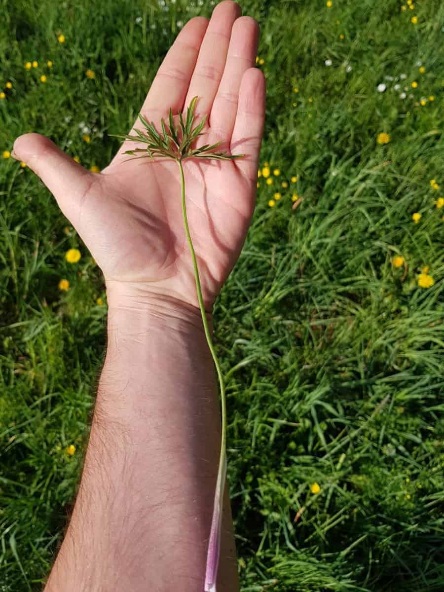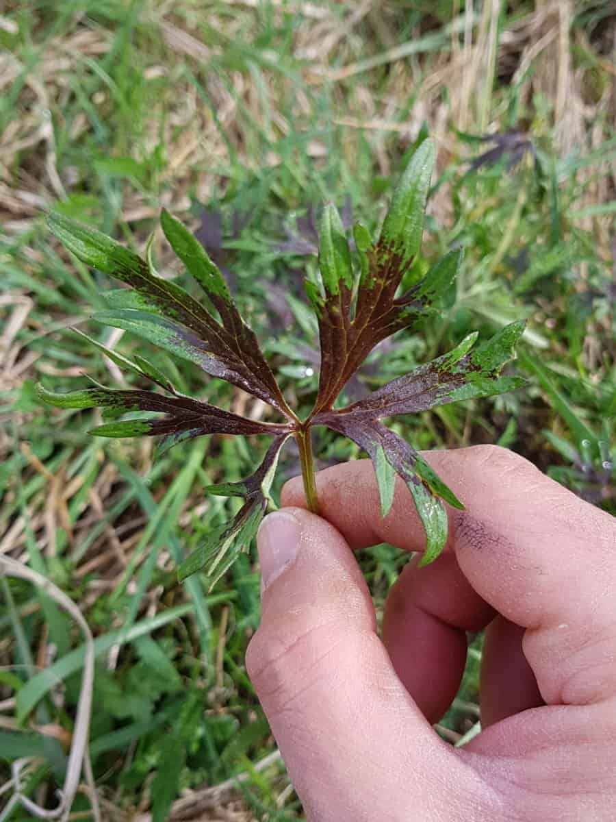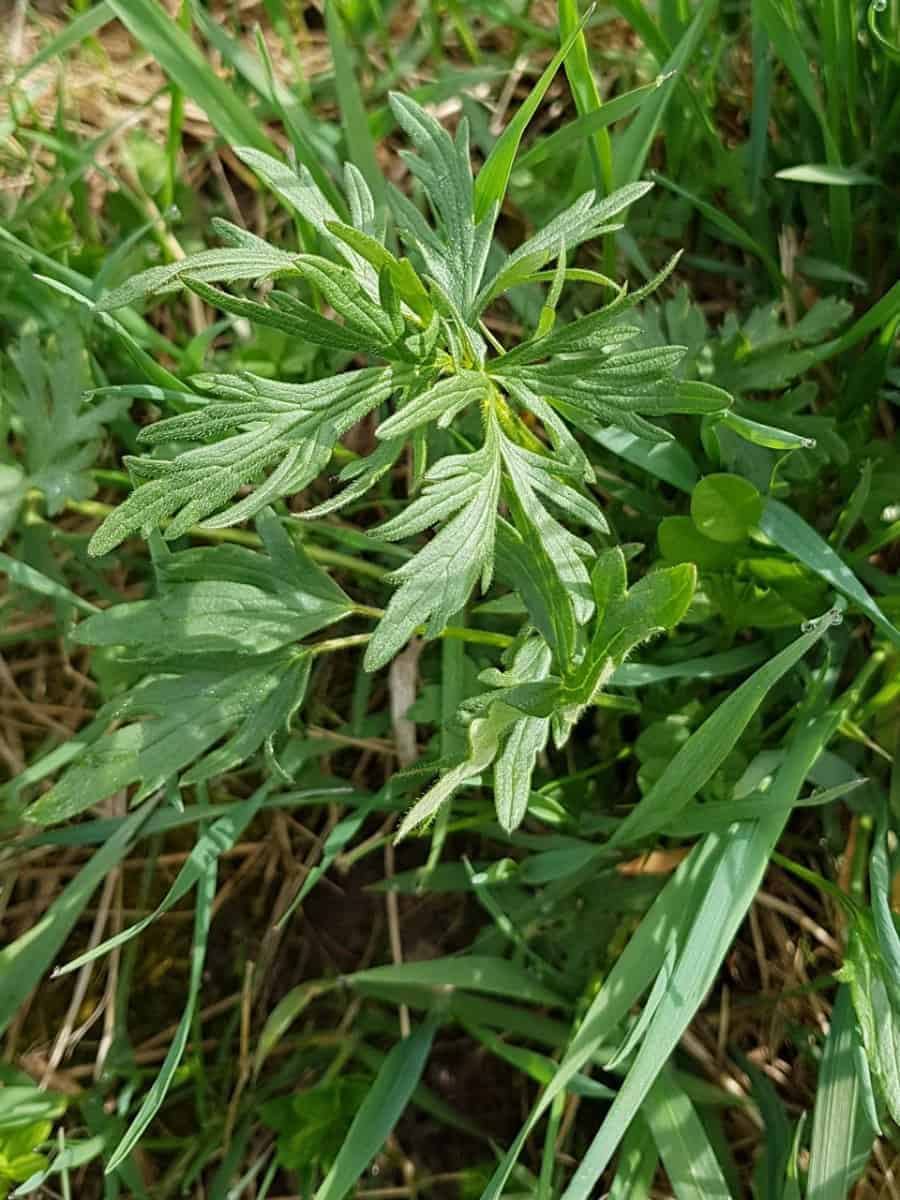 - Grundblätter: Relativ lang gestielt, weisen einen pentagonalen (fünfeckigen) Umriss auf und sind drei- bis fünfteilig tief eingeschnitten, oft bis zum Blattgrund, was ihnen das Aussehen eines Vogelfußes verleiht.
