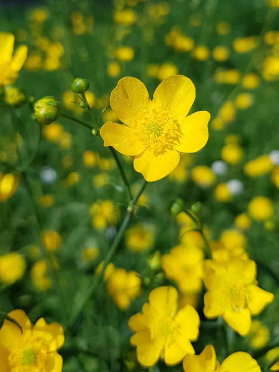 Der Scharfe Hahnenfuß ist eine hochgewachsene, elegante Wiesenpflanze, die leicht an ihren intensiv glänzenden, gelben Blüten und den vogelfußartig zerschlitzten Blättern zu erkennen ist.