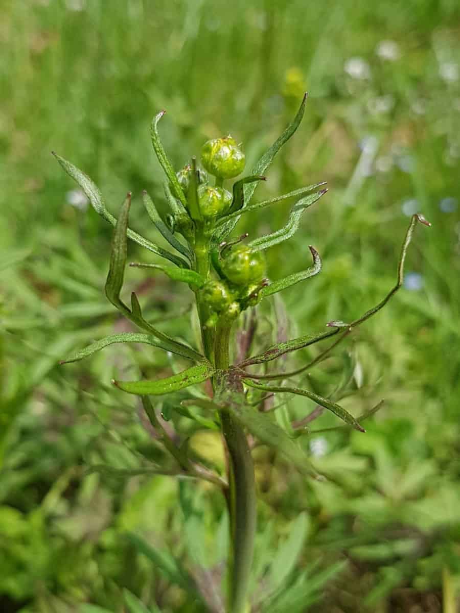 - Stängelblätter: Wechselständig angeordnet. Je weiter oben sie am Stängel wachsen, desto kürzer ist ihr Stiel (die obersten sitzen direkt am Stängel), sie sind ebenfalls tief gelappt bis gezähnt.