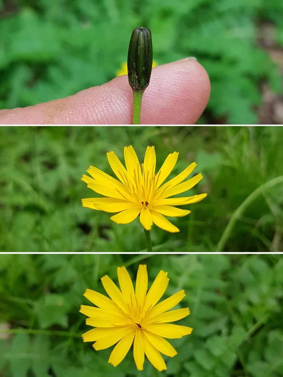 Der Hainsalat wächst als flache, milchsaftführende Rosettenpflanze dicht am Waldboden. Er teilt zwar die gelben Körbchenblüten und den Wuchs mit dem Löwenzahn, besitzt jedoch völlig anders geformte Laubblätter und einen auffälligen Geruch.