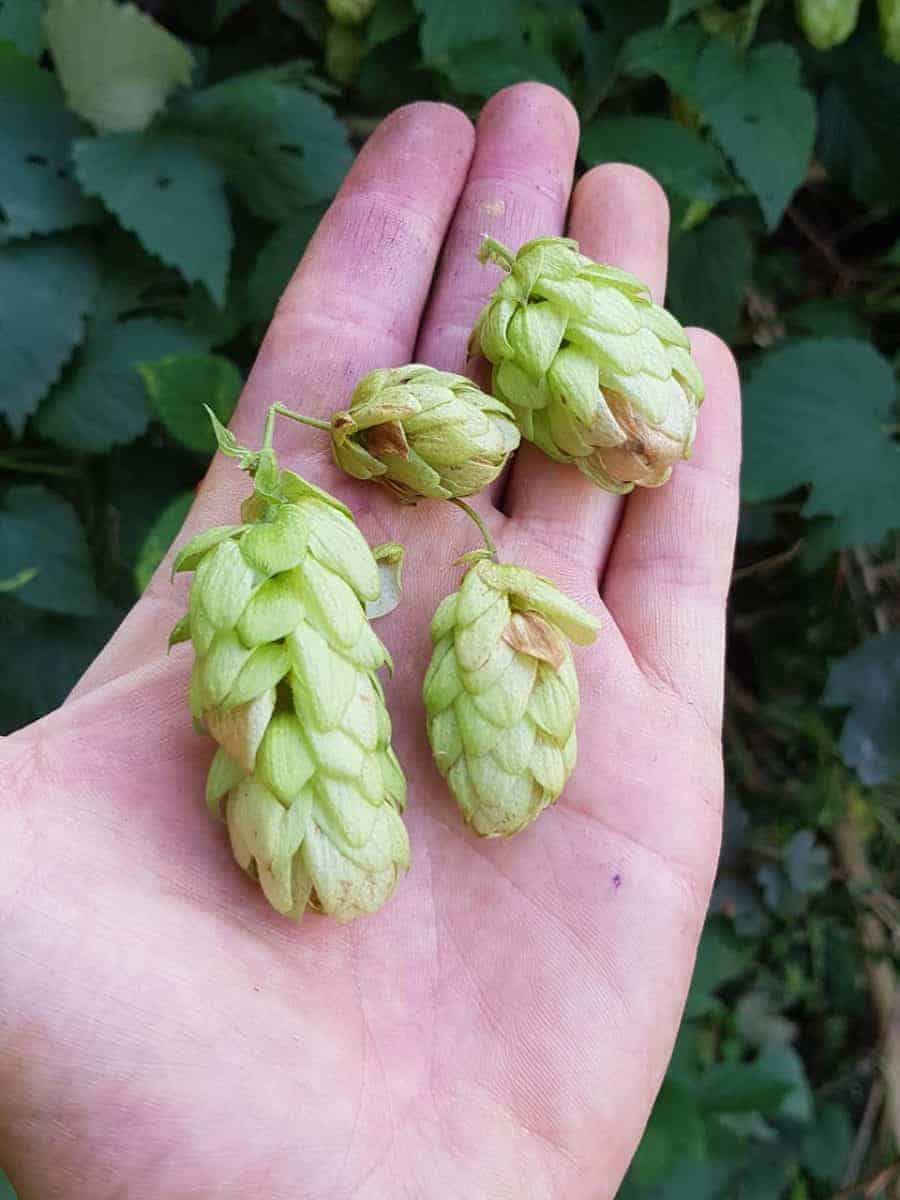 - Blüten: Ernte von Juli bis August. Weibliche Zapfen dienen als Würze für Bier, Tee, Liköre oder Limonaden. Die kleineren männlichen Blüten können gedünstet als zartes Gemüse verzehrt werden.