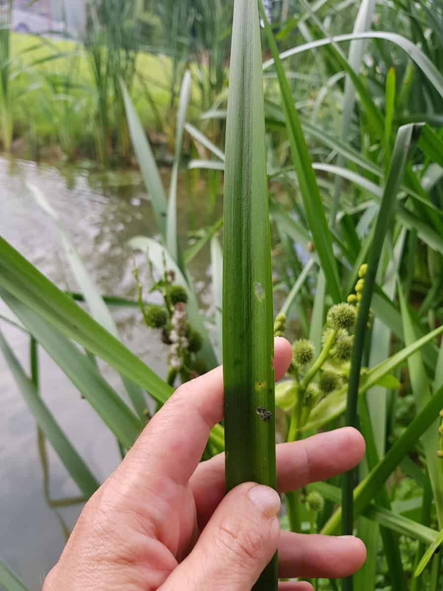 - Kalmus (Acorus calamus): Wächst an ähnlichen Standorten. Unterscheidet sich durch einen gewellten Blattrand und einen stark aromatischen, mandel- bis zitrusartigen Geruch beim Zerreiben der Blätter.