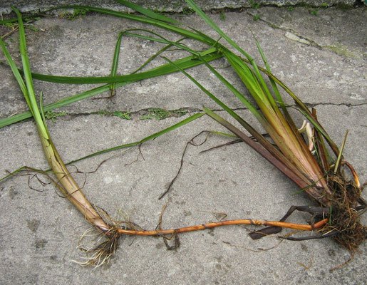 - Wurzelwerk: Kräftiges, kriechendes und stärkereiches Rhizom