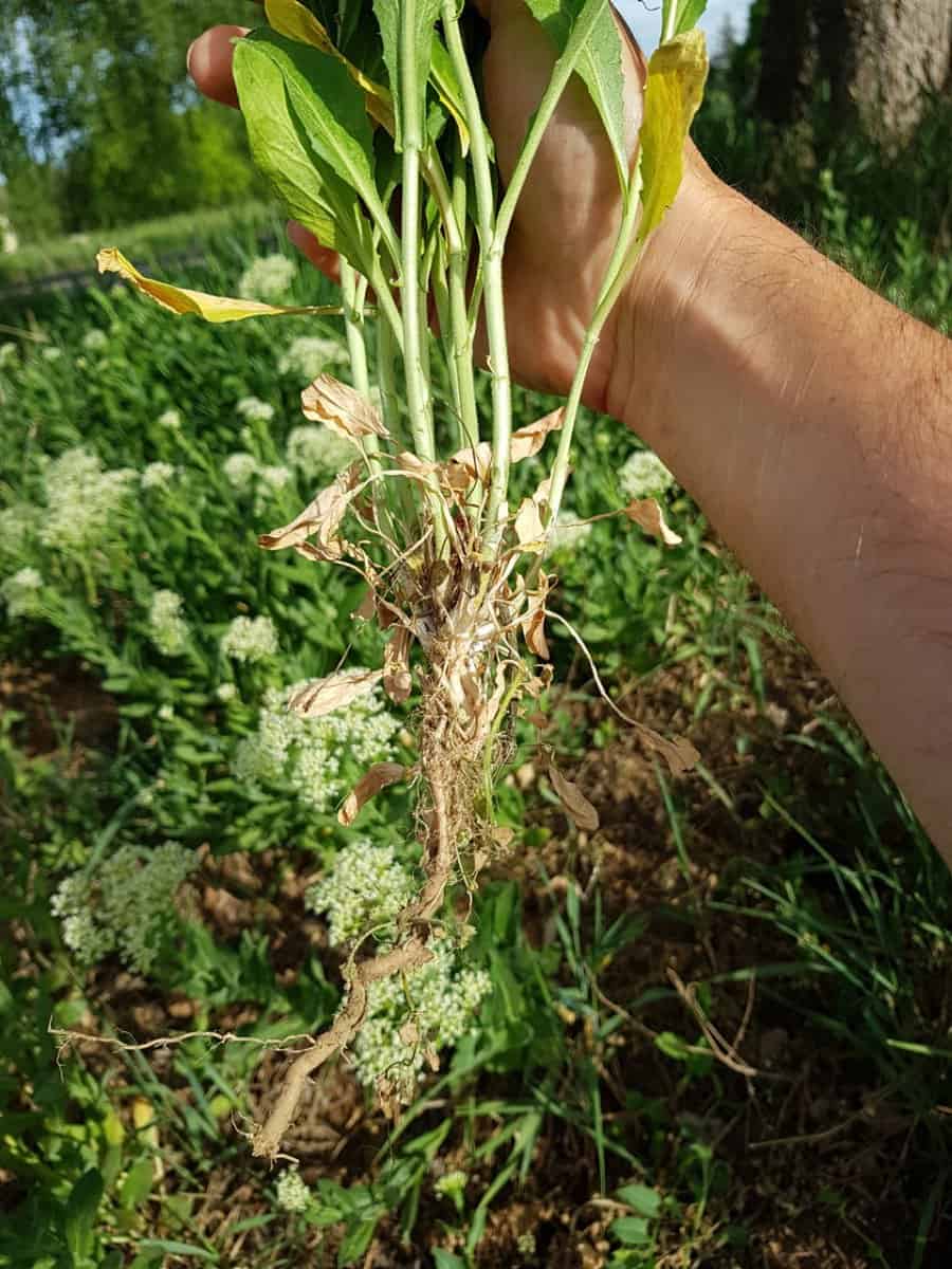 • Wurzelwerk: Pfahlwurzel mit weitreichendem Rhizomsystem