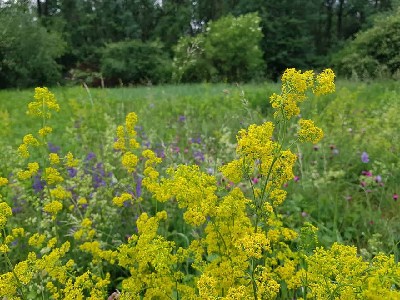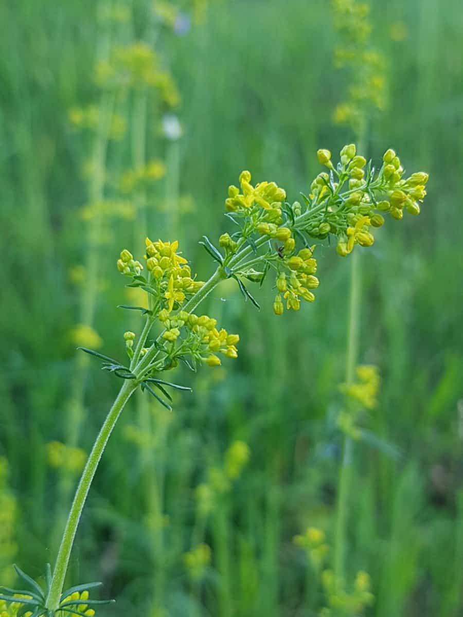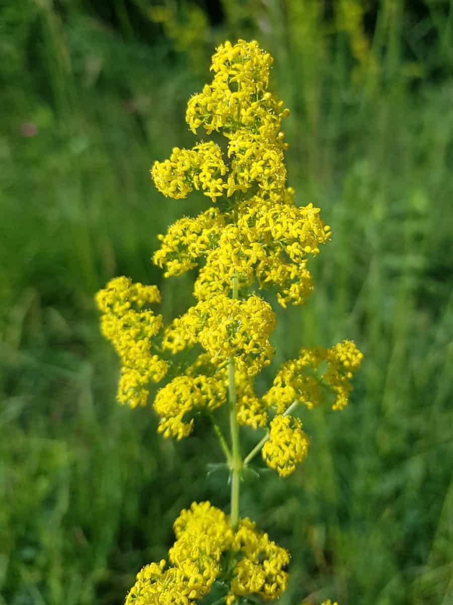 Das Echte Labkraut erkennst du leicht an seinen filigranen, fast nadelartigen Blattquirlen und den charakteristischen, intensiv nach Honig duftenden gelben Blütenwolken.