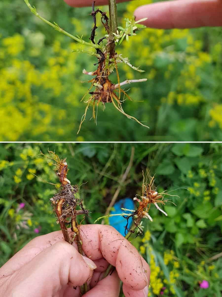 • Wurzelwerk: Weitkriechende, stark verzweigte unterirdische Ausläufer (Rhizome)