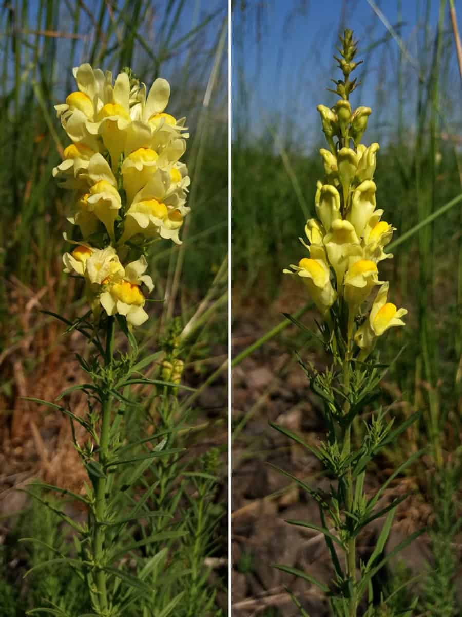 Das Echte Leinkraut wächst meist in kleinen, dichten Gruppen und ist durch seine schmalen, flachsähnlichen Blätter und die löwenmaulartigen, schwefelgelben Blüten mit dem markanten orangen Fleck sehr leicht zu erkennen.