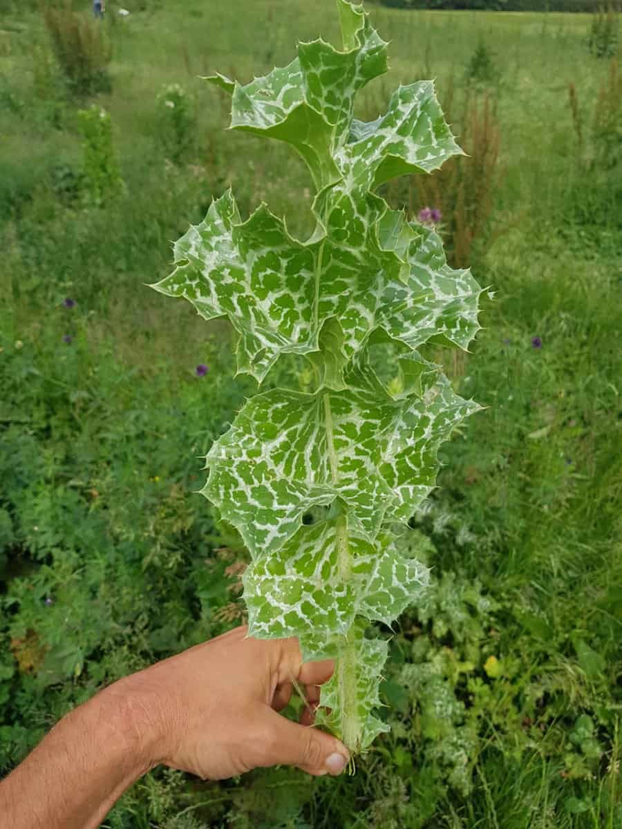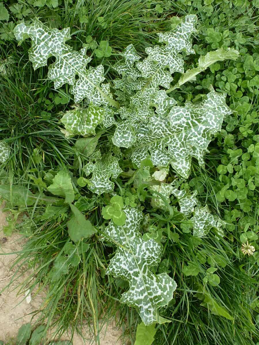 Die Mariendistel wirkt überaus imposant und ist dank ihrer unverwechselbaren Blattzeichnung in Mitteleuropa kaum mit anderen Disteln zu verwechseln.