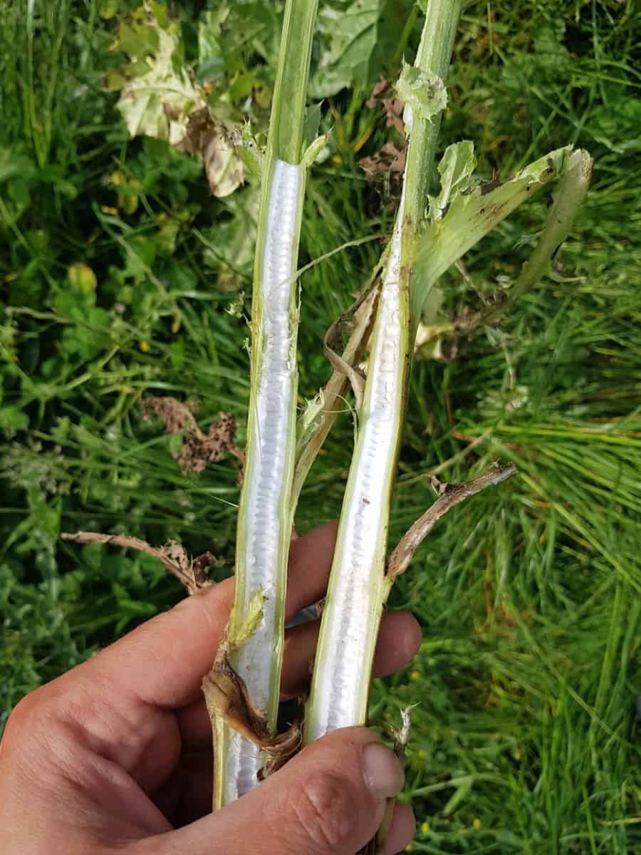 - Blätter & Triebspitzen (April bis Juni): Junge, saftige Stängel können vor der Blüte geschnitten werden. Wenn man sie schält und von den zähen Fasern und Dornen befreit, lassen sie sich wie Stargel oder Mangold dünsten. Junge Blätter können nach dem restlosen Entfernen der Dornenränder (am besten mit einer Schere) roh im Salat oder als Kochgemüse verzehrt werden.