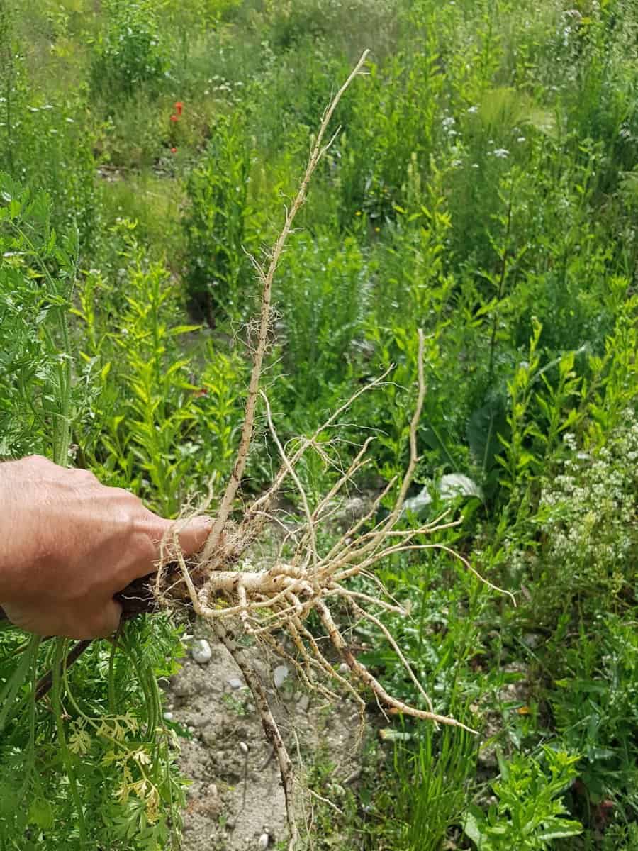 Wurzeln: Die Wilde Möhre reichert im ersten Jahr ihre Wurzel mit Zucker an. Diese kann etwa ab September bis in das Frühjahr des zweiten Jahres geerntet und genutzt werden. Nur in dieser Zeit ist sie weich (und gehaltvoll) und kann dann auch roh gegessen werden. Natürlich eignet sie sich gleich der Karotte als Koch-, Back-, und Pfannengemüse.