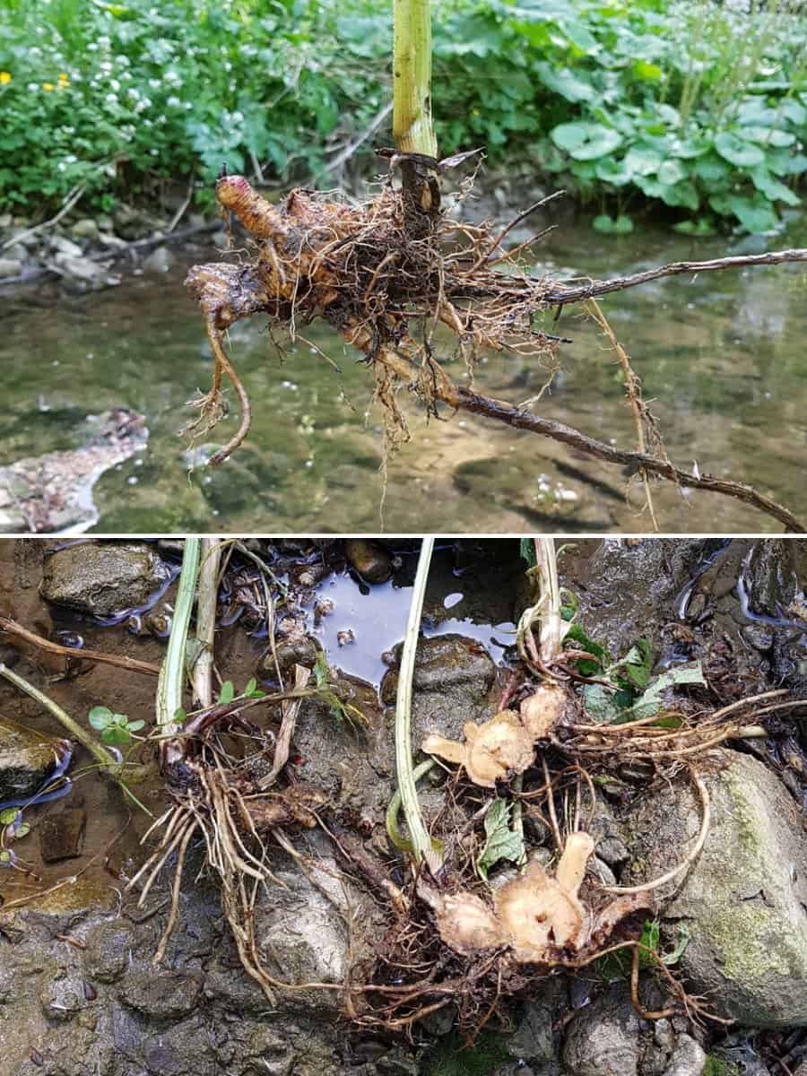 - Wurzelwerk: Kräftiges, weit kriechendes Rhizom (bis 4 cm dick)