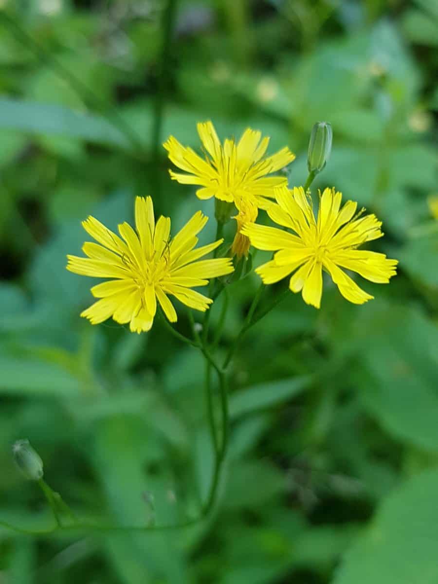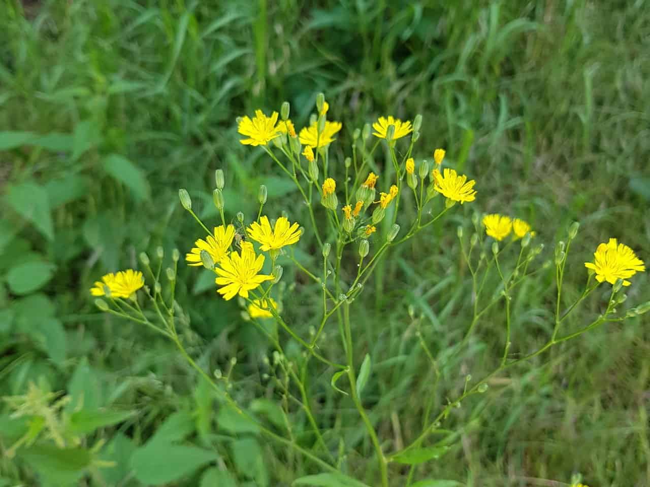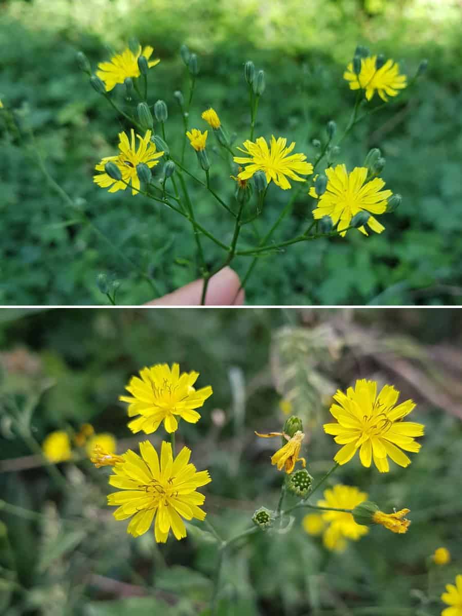 - Mauerlattich (Mycelis muralis): Wächst an ähnlichen Standorten. Seine Blütenkörbchen sind jedoch noch filigraner und enthalten exakt nur fünf (selten vier) Zungenblüten. Seine Blätter sind tief buchtig gelappt mit dreieckigem Endabschnitt, und die Samen besitzen einen weißen Haarkranz. Auch der Mauerlattich ist ungiftig und essbar.