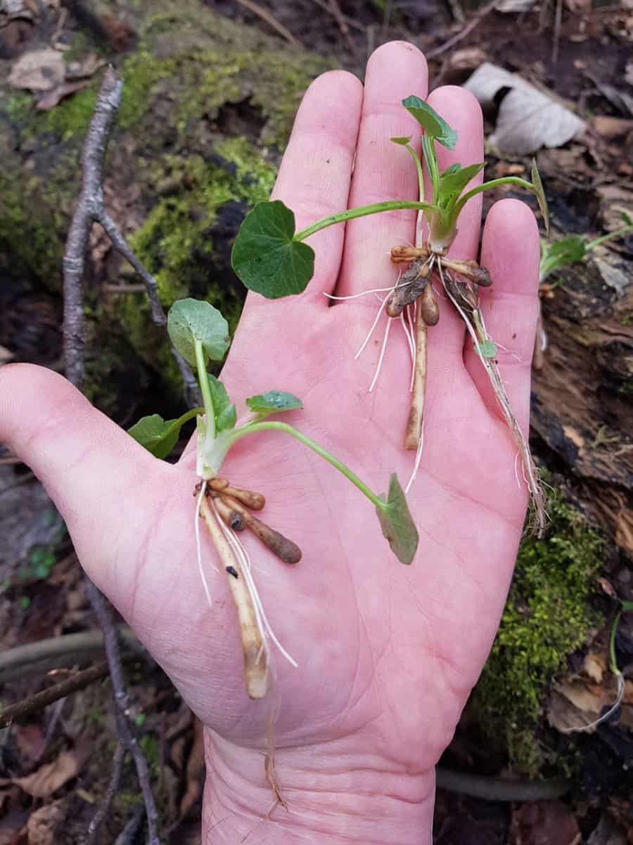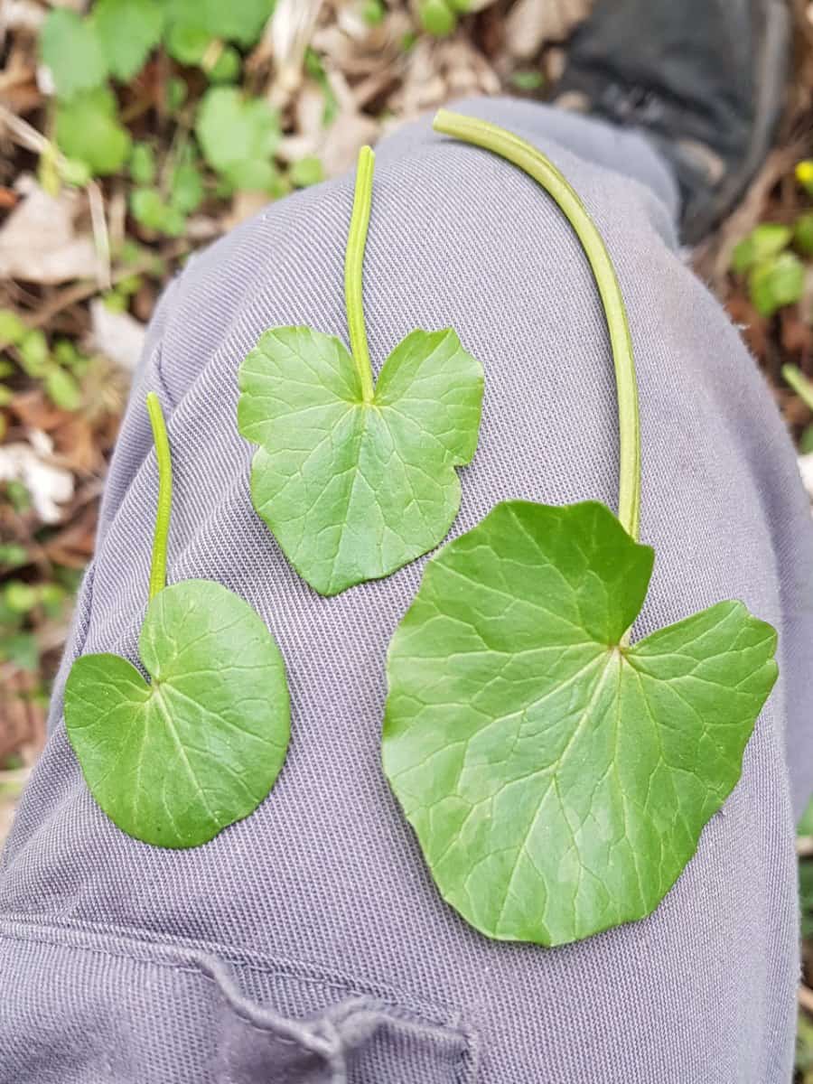- Haselwurz (Asarum europaeum): Die Blätter ähneln denen des Scharbockskrauts in ihrer Nierenform. Haselwurzblätter sind jedoch dunkelgrün, lederartig derb und wachsen an behaarten Stielen. Zerrieben verströmen sie einen stechenden, pfeffrig-kampferartigen Geruch. Stark giftig!
