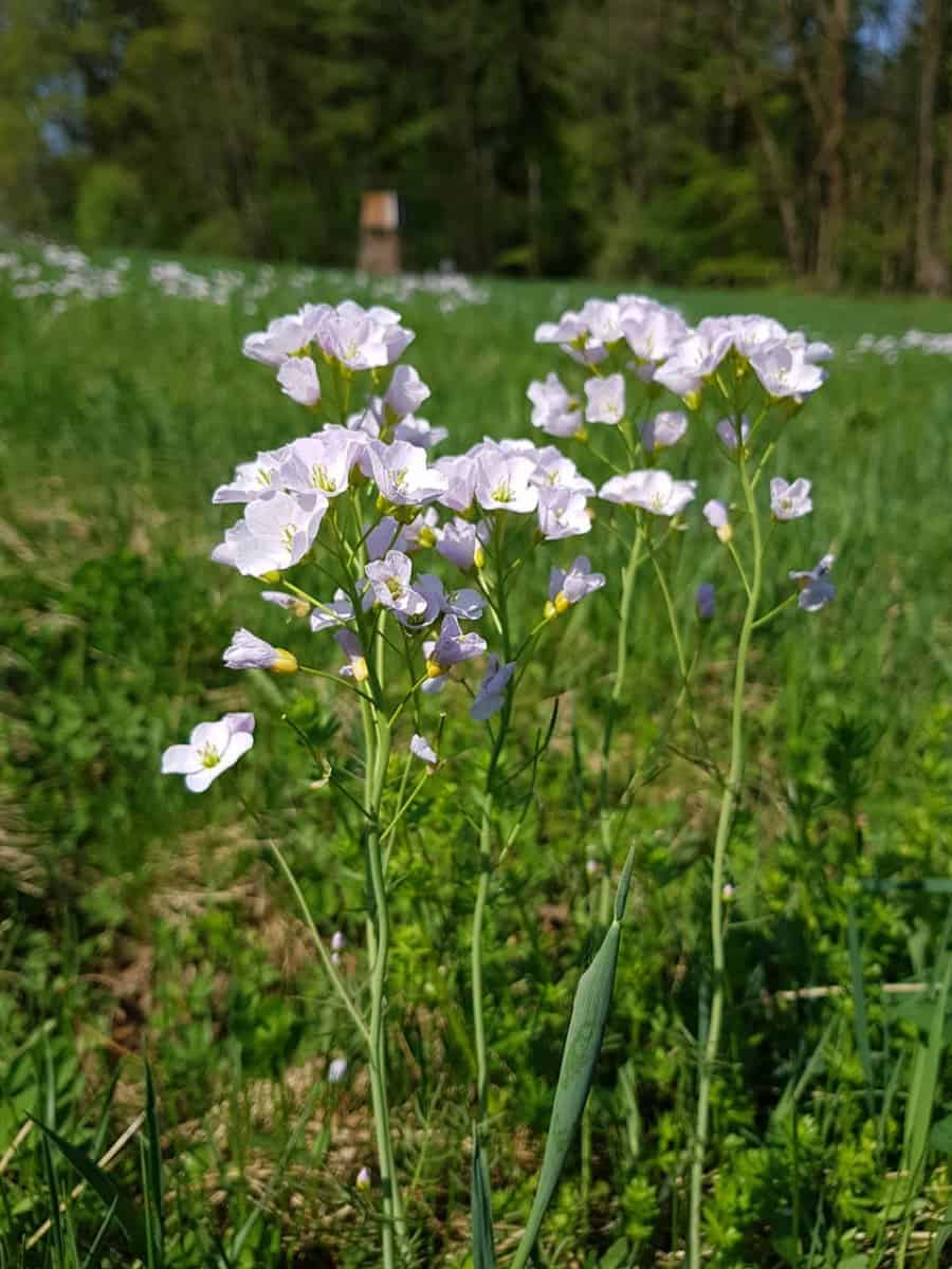 Das Wiesen-Schaumkraut erkennst du im Frühjahr unschwer an seinen zart violett bis blasslila gefärbten Kreuzblüten, die feuchte Wiesen oft massenhaft überziehen, sowie an den unterschiedlichen Blattformen von Rosette und Stängel.