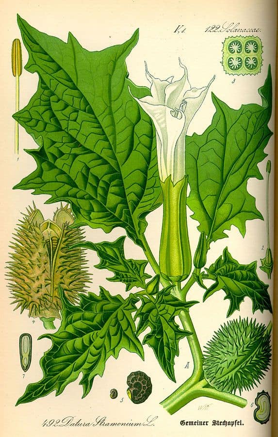 - Andere Namen: Weißer Stechapfel, Dornapfel, Hexenkraut, Tollkraut