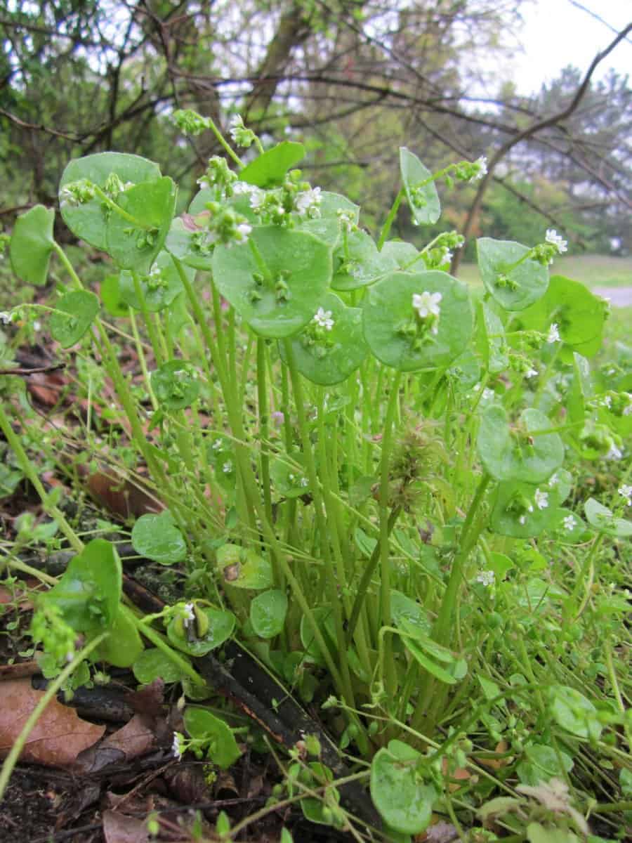 - Vogelmiere (Stellaria media): Besitzt ebenfalls eiförmige, frischgrüne Blätter im Winter, bildet aber niemals die tellerartig verwachsenen Hochblätter aus. (Ebenfalls essbar).