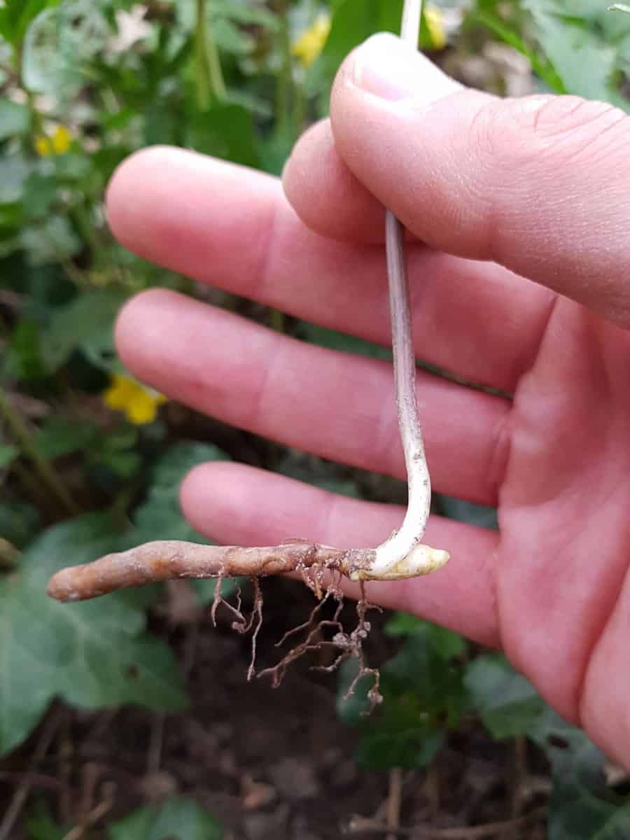 • Überdauerungsorgan (Wurzel): Die Pflanze treibt im Frühjahr aus einem waagerecht im Boden kriechenden, oft bräunlich bis schwärzlichen Rhizom aus, in dem sie ihre Nährstoffe speichert.