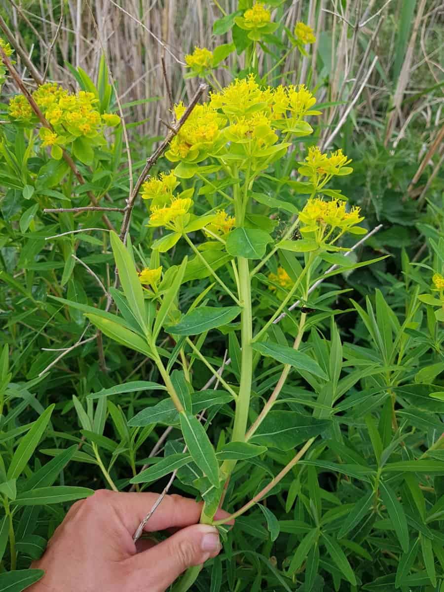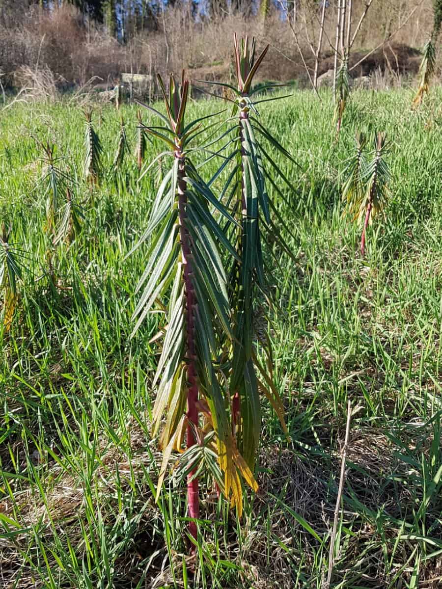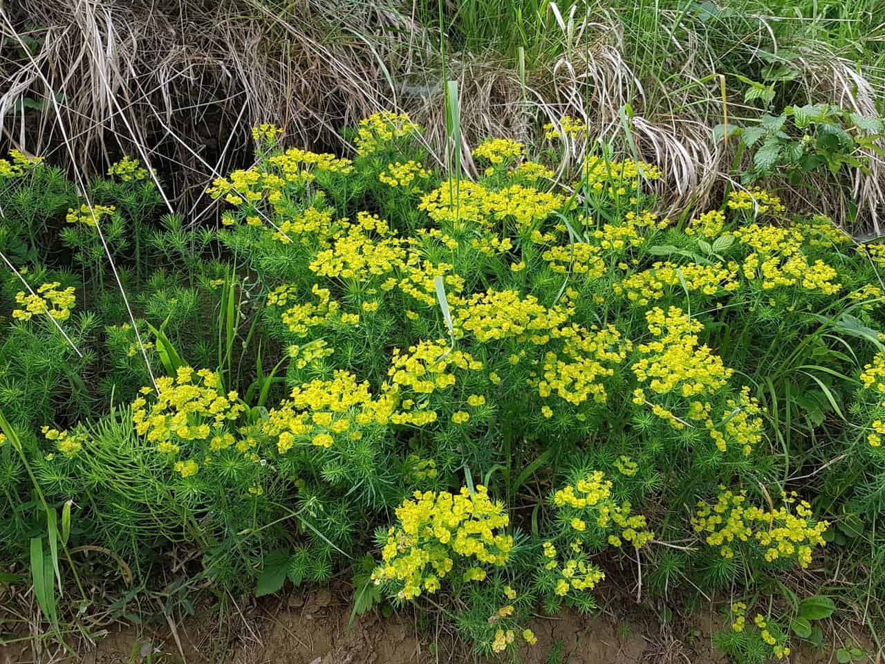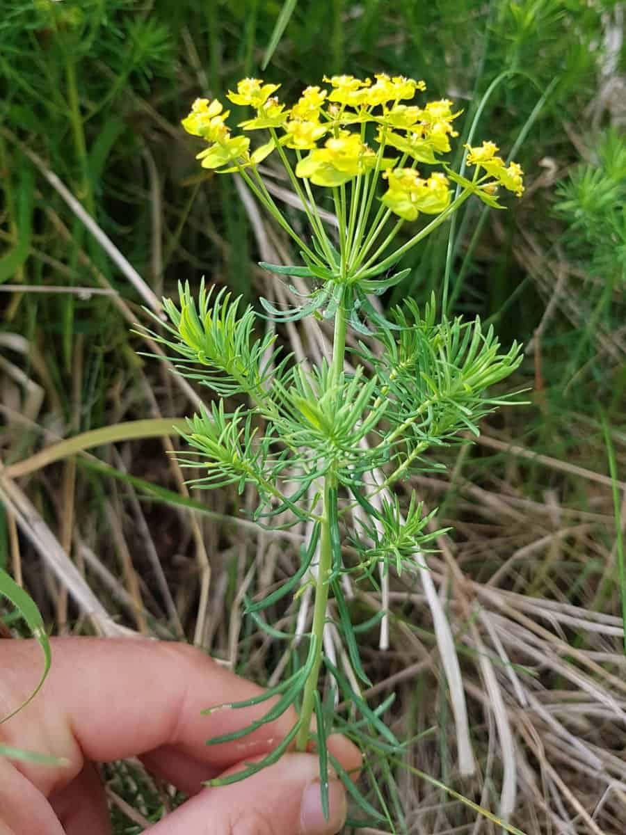 - Esels-Wolfsmilch (Euphorbia esula): Besitzt deutlich breitere, längliche Laubblätter und meist weniger Doldenstrahlen. Ihr fehlen die extrem feinen, zypressenartigen Triebe.