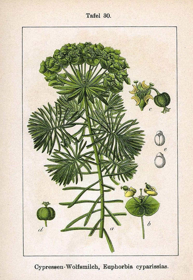 - Droge: Euphorbiae cyparissiae herba (historisch)